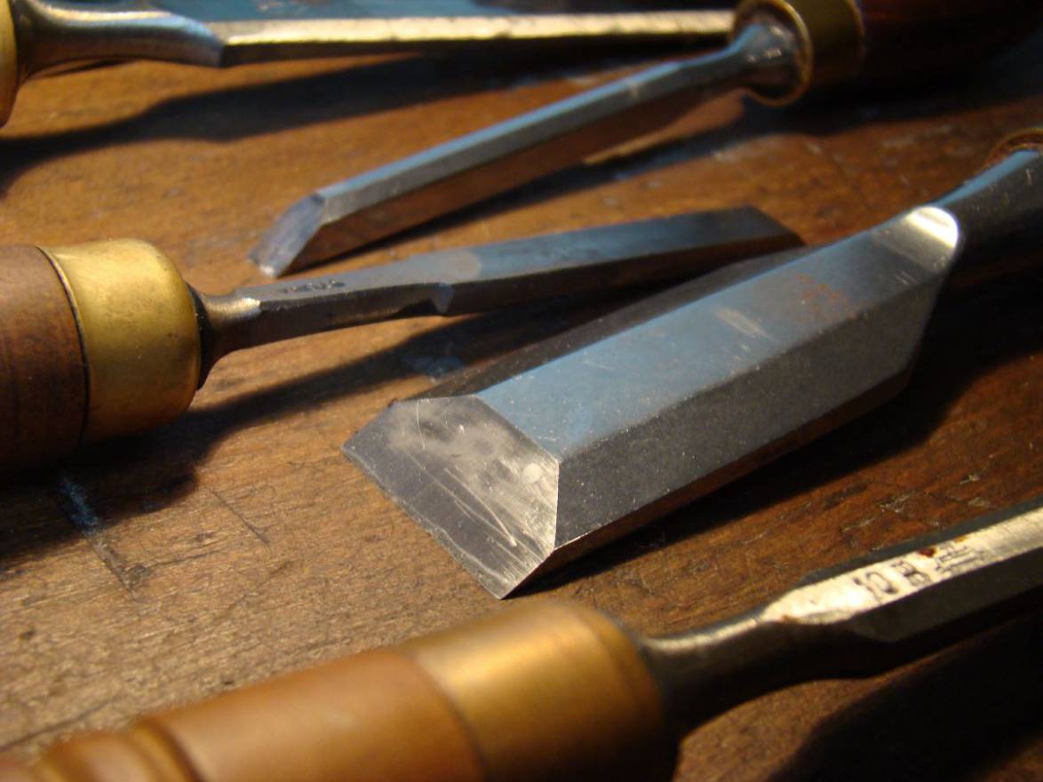 Die geraden Stemmeisen gibt es im Geigenbau in unterschiedlichen Breiten. Die breiteren werden eher im Neubau benutzt und die schmalen bei Holzreparaturen & Bogenreparaturen. Z.B. um ein Bogenkästchen nachzuarbeiten.