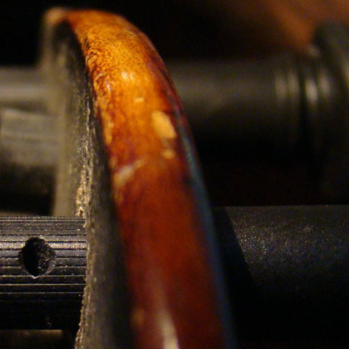 Wichtig! Die Saite darf nur auf dem geriffelten Teil (der Bereich, der beweglich ist) aufliegen. Auch muß der Wirbel so eingepasst sein, dass dieser Bereich bis an die Wirbelkastenwand heran reicht!