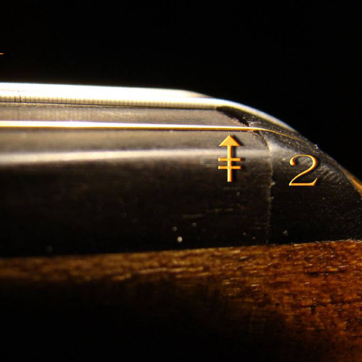 Die Sattelkerbe darf am Ende nicht abfallen. Befindet sich am Ende ein kleiner Spalt zwischen Saite und Saitenkerbe, entstehen durch die Schwingung (nur bei gespielter leerer Saite) Schnarrgeräusche. Der Geigenbauer kann diesen Fehler korrigieren.