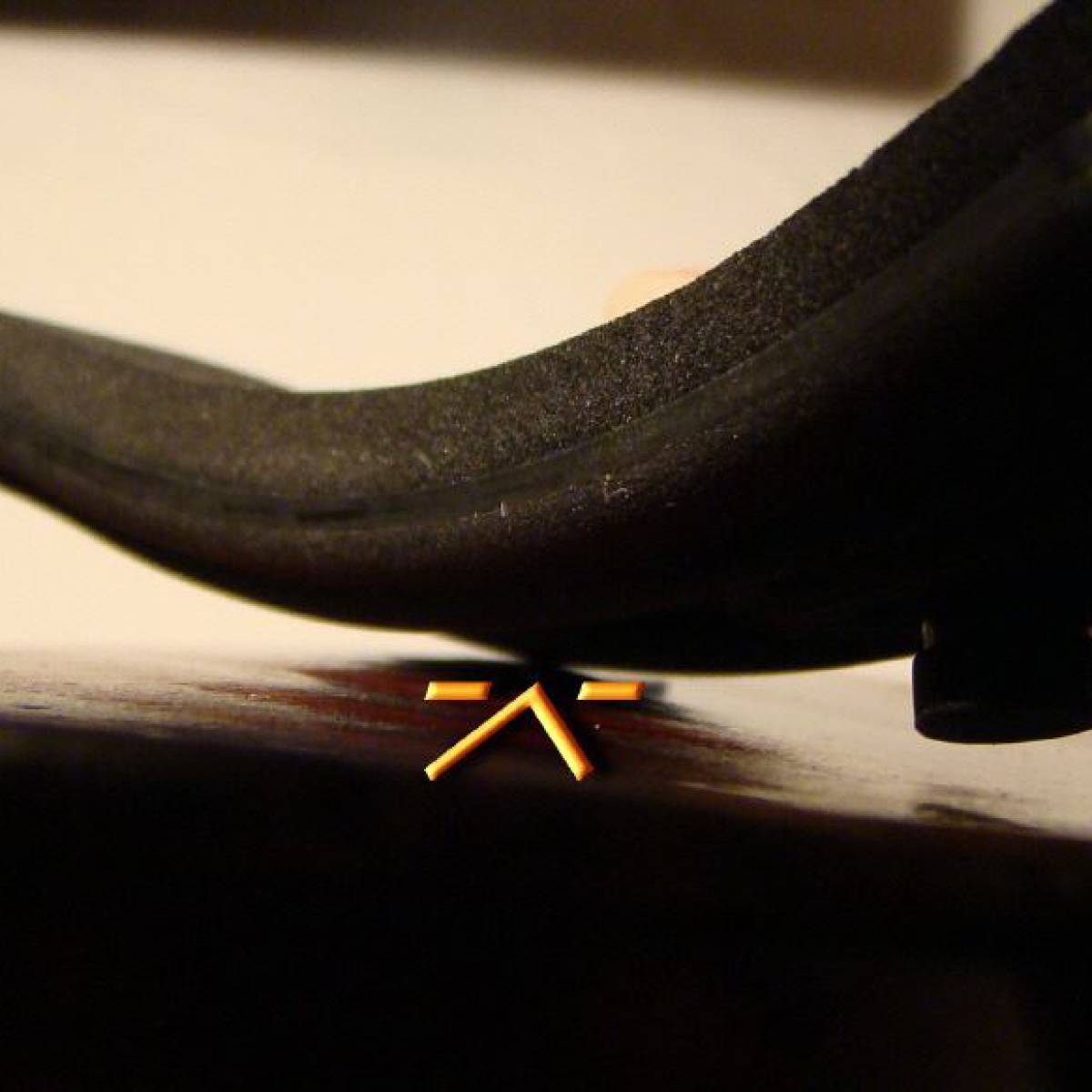 Eine sehr flach eingestellte Schulterstütze kann in Kontakt zum Korpus geraten. Bei leichter Berührung entstehen starke Klappergeräusch. Außerdem ist der Lack und schlimmstenfalls das Holz gefährdet. Dieses Problem tritt eher bei Bratschen auf, da aufgrund der Zargenhöhe Stützen meist niedriger eingestellt werden.