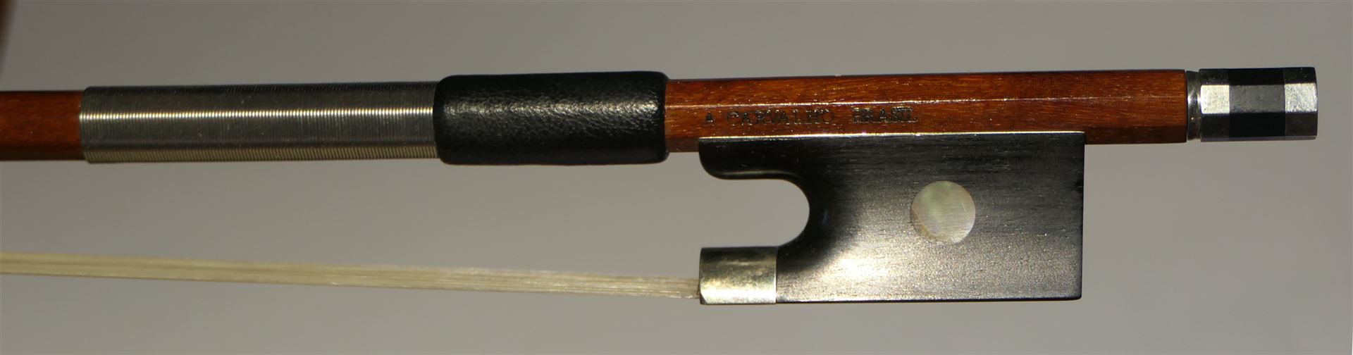 Das Gewicht eines Violinbogens beträgt zwischen 56 und 64 Gramm. Entscheidend für das Spielempfinden ist jedoch die Gewichtsverteilung. Ein zu schwerer Kopf eines leichten Bogens kann aufgrund der Hebelwirkung als recht schwer empfunden werden.