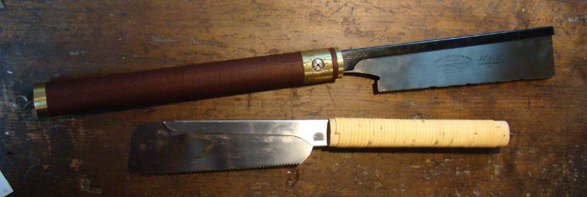 Besonders gut eignen sich im Geigenbau die Japanischen Sägen, die auf "Zug" Sägen. Mit ihnen lassen sich exakte Schnitte in das Holz schneiden. Das ist insbesondere bei den Arbeiten eines Anschäfters wichtig, bei denen ein keilförmiger Ausschnitt in den Wirbelkasten geschnitten werden muß.