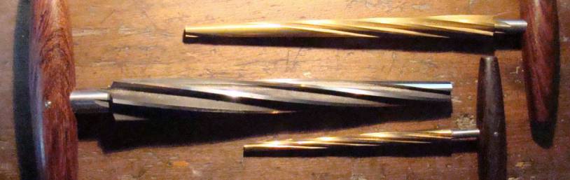 Beim Wirbeleinpassen und beim Aufdrehen des Saitenhalterknopfes wird die Reibahle benutzt.