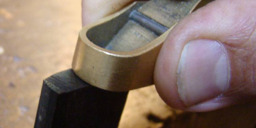 Die Unterseite des Griffbrettes die oberhalb der Decke liegt ist hohlgekehlt und wird mit einer Ziehklinge bearbeitet.