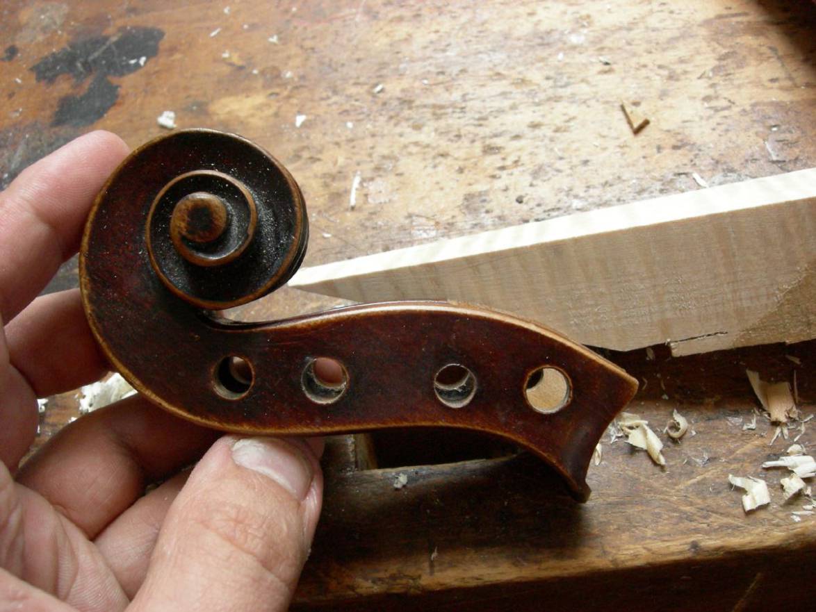 Sollte eine Geige/ Bratsche mit moderner Mensur und einem Zettel aus dem 18Jh. vorliegen und diesen Anschäfter-Umbau nicht haben, ist es meistens ein Merkmal für einen nicht originalen Zettel (Ausnahmen gibt es, wenn z.B. der Hals am Halsfuß verlängert wurde.
