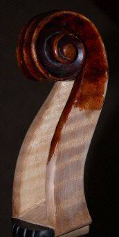 Nachdem der Schneckenkopf auf ein neues, von der Holzstrucktur passendes neues Anschäfterholz gepasst wurde, war es die Aufgabe, im Stil des Instrumentes den Wirbelkasten und Hals nachzubauen.